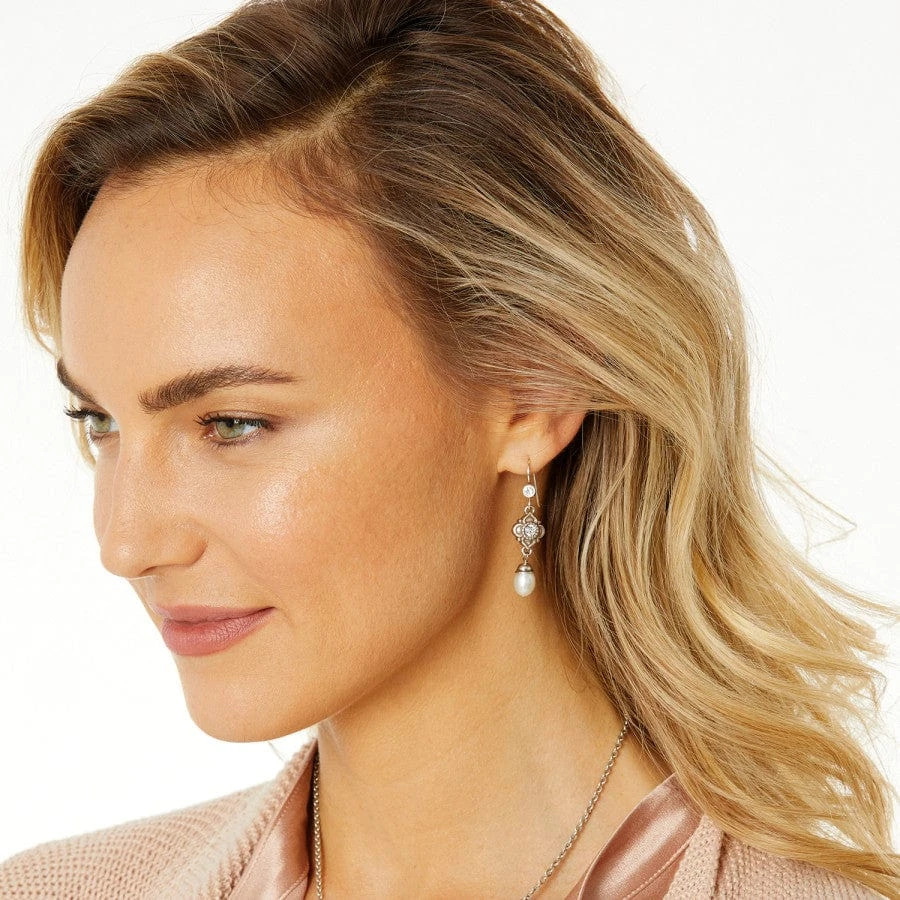 Freshwater pearls add a regal effect to these sparkling earrings inspired by the Alcazar Palace in Seville, Spain.