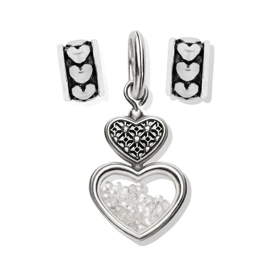 A shaker heart charm with fine crystals and spacers with rows of hearts are reminders to count her blessings – especially all the love in her life.