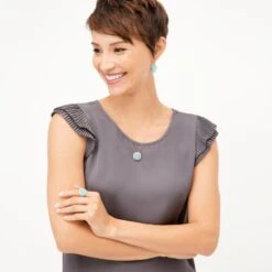 The magic of this beautiful ring is that you can “click” out its aqua-hued Amazonite cabochon and replace it with another stone from our Color Clique Gem Collection.