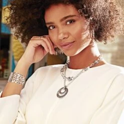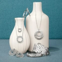 With double rings that spin (how cool is that?) and scrolls to define the fun movement, this will be a fave necklace to wear and get playful with.
