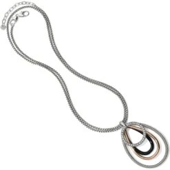 Layered teardrops of gold and black give dramatic texture to this elegant pendant. Topped with a ring of fine quality crystal, the look is sophisticated and unique.